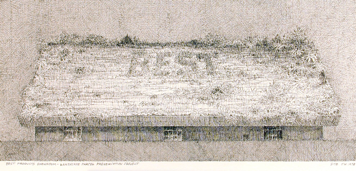 James Wines, SITEBest Products Showroom, Landscape Parcel Preservation Project. Exterior Perspective1978 -