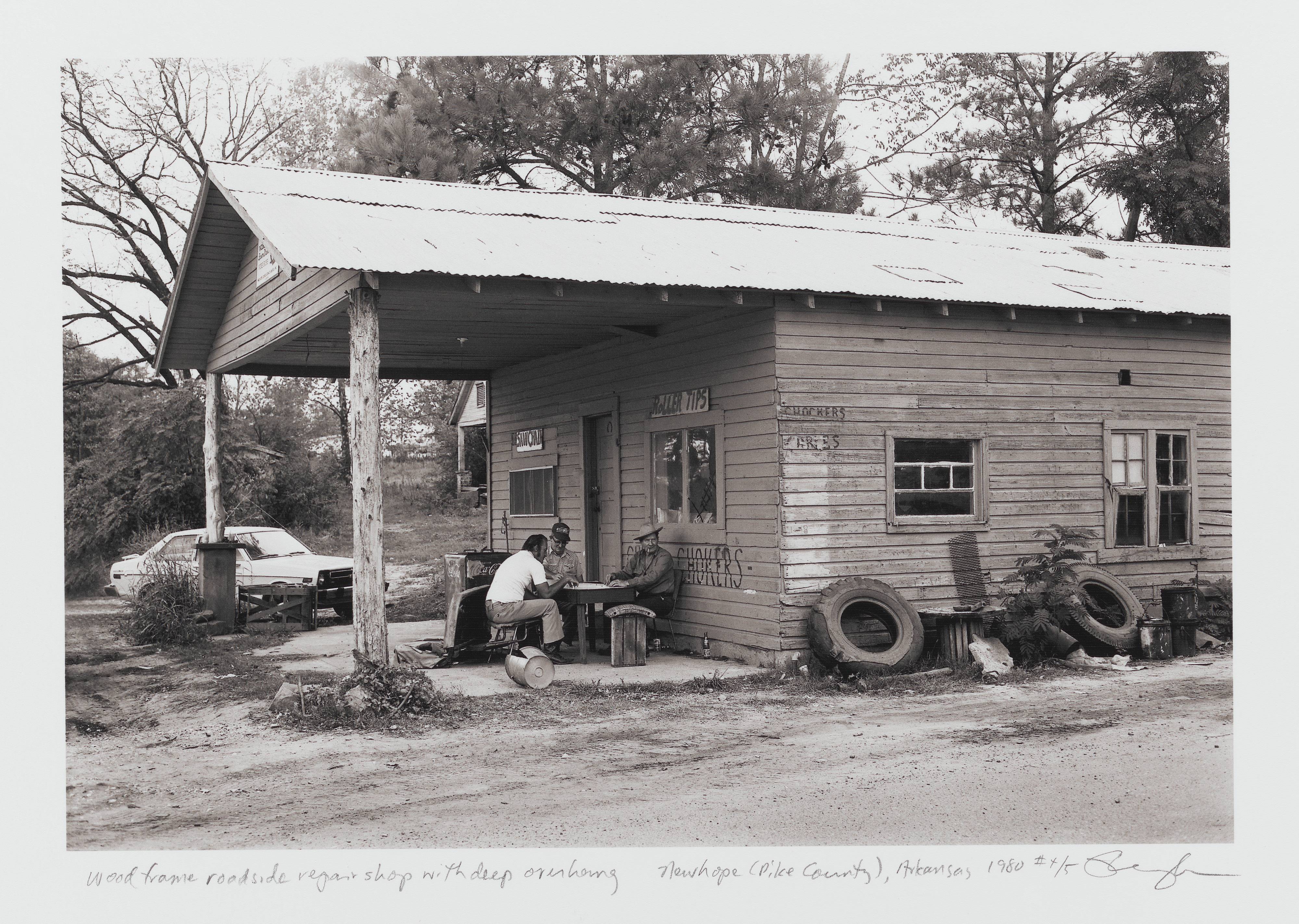 Geoff WinninghamWood frame roadside repair shop with deep overhang, Newhope (Pike County), Arkansas, from the series Of the Soil1980, printed 2014 -