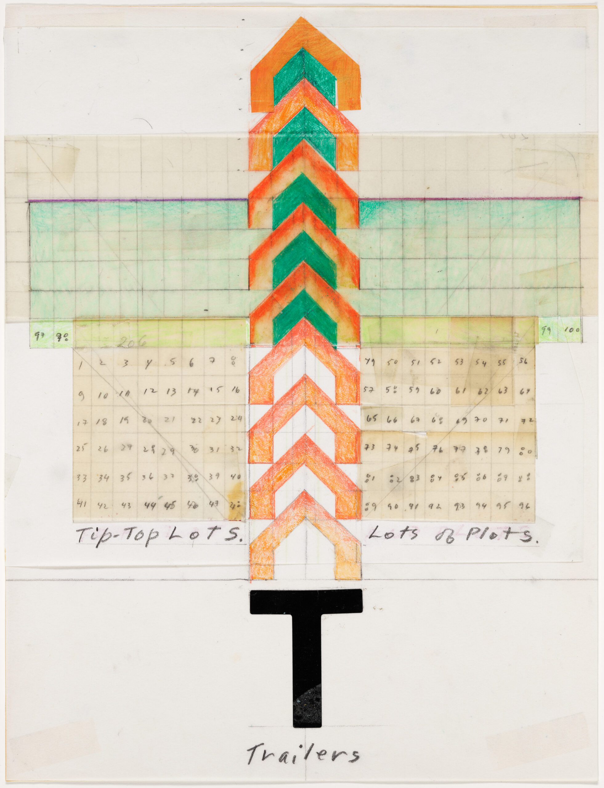 - colored pencil, graphite and transfer type on paper