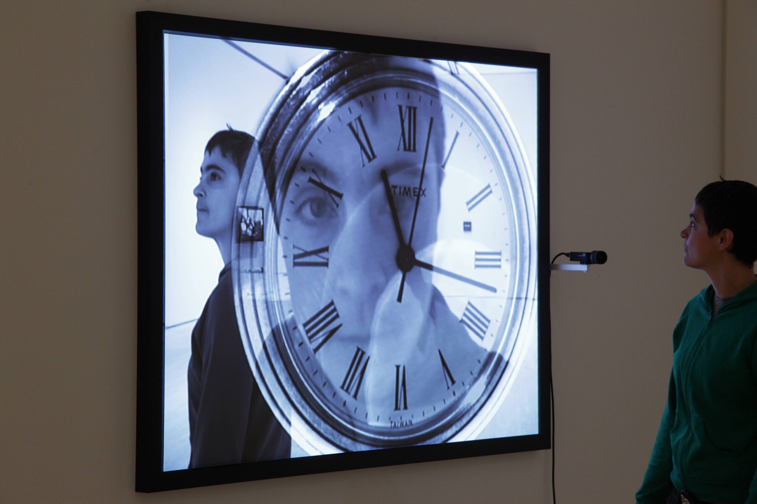 - closed-circuit video projection, two video cameras, custom electronics, and watch
