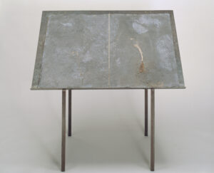 - plants, lead, and gold leaf on canvas in a glazed steel frame