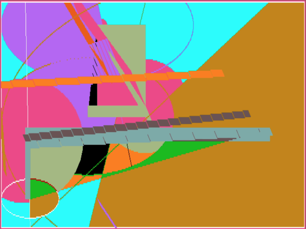 A prolific painter and pioneer in digital art, Samia Halaby has been exploring the visual language of abstraction for over six decades. The artist’s dynamic painting compositions investigate how we perceive the moving world through the interplay of textures, surfaces, color, and light. This direction emerged out of her love and study of early 20th century abstraction as in Cubism, Futurism, and Constructivism wherein time emerged as a new dimension in pictures. Halaby’s explorations in computer programming led to abstractions in motion. After purchasing a Commodore Amiga 1000 in 1986, she taught herself how to code in computing language BASIC and C for creating what she calls “kinetic paintings”. Combinations of numbers became her color palette, and marks on a canvas turned into illuminated pixels on a screen. Lines and shapes are no longer static planes in this expanded form of picture making. They can sprout with growth and change captured over time on a computer surface with endless depth, akin to the living and generative characteristics of nature.