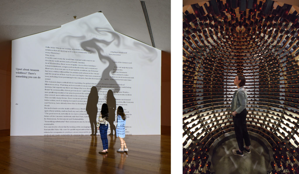 Rafael Lozano-Hemmer: Unstable Presence additionally examines the concept of “co-presence” by highlighting how our physical presence and the natural and technological spaces we inhabit form a continuous stream of interaction. Lozano-Hemmer noted, “Presence is often associated with existence, continuity in time or material reality. The ‘unstable’ in the exhibition’s title refers to interaction, improvisation and performance. The instability brought by participation allows constant reinterpretation of the work, where many outcomes are co-present.”
