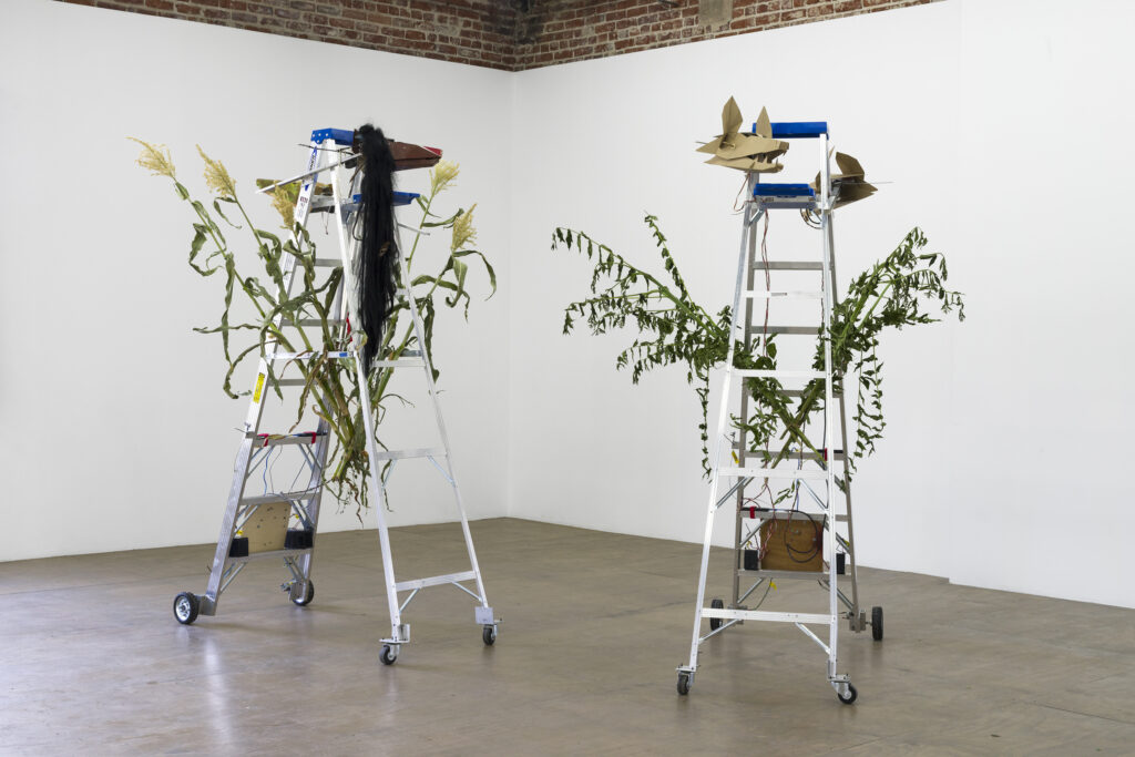 Fernando Palma Rodríguez brings SFMOMA’s New Work gallery to life this fall with an installation that recalls a Mesoamerican creation story enacted by a series of newly made mechatronic sculptures that blend mechanical engineering, electrical engineering and computer science. In the story, four gods representing the cardinal directions preserve order and give structure to our understanding of reality, and the sculptures enact this narrative as characters in a play. Using materials such as ladders, chairs, electronic sensors, soil, and other domestic and natural objects, the exhibition is intended to instill in the public with a heightened sense of urgency driven by climate change and a desire for sustainability.