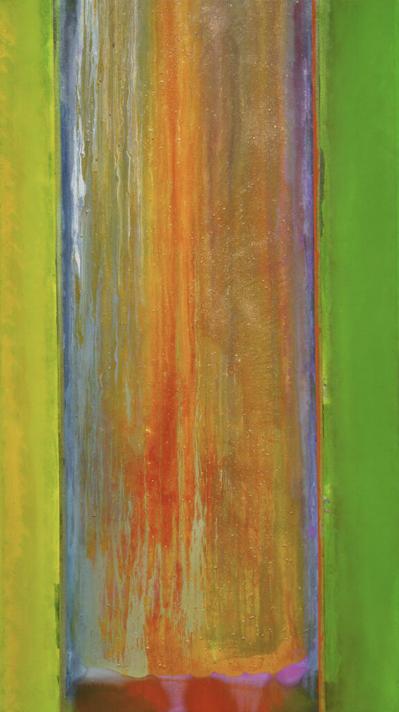 A recent painting: Frank Bowling, 4 Bensusi, 2020; Frank Bowling Collection; © Frank Bowling; all rights reserved Artists Rights Society (ARS), New York / DACS, London, 2023; courtesy the artist; photographed by the Frank Bowling Studio
