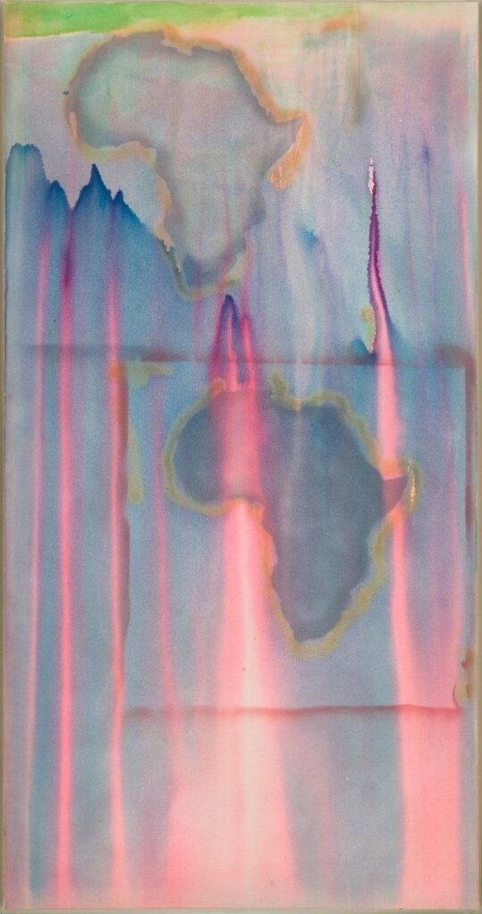 An example of a map painting: Frank Bowling, Barticaborn I, 1967 Lowinger Family Collection; © Frank Bowling; all rights reserved Artists Rights Society (ARS), New York / DACS, London, 2023; courtesy the artist; photographed by Stan Narten